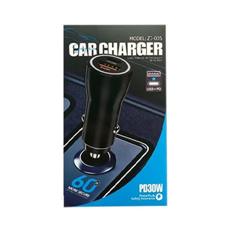 شارژر فندکی فست شارژ مدل ZD-005 60W پشتیبانی از شارژ سریع انواع گوشی هوشمند، تبلت و دستگاههای دیجیتال سیستم حفاظتی چندلایه در برابر نوسانات ولتاژ، جریان بیشازحد و حرارت طراحی جمعوجور و سبک، مناسب برای فضای محدود خودرو بدون کابل، مناسب برای استفاده با انواع کابلهای موجود یک پورت Type-C با فناوری Power Delivery، توان 30 وات کیفیت ساخت بالا همراه با عملکرد پایدار در طول زمان توان خروجی کلی 60 وات برای شارژ سریع و قدرتمند یک پورت USB با فناوری Quick Charge، توان 30 وات دو درگاه خروجی برای شارژ همزمان چند دستگاه سازگار با انواع خودروها و فندکهای استاندارد