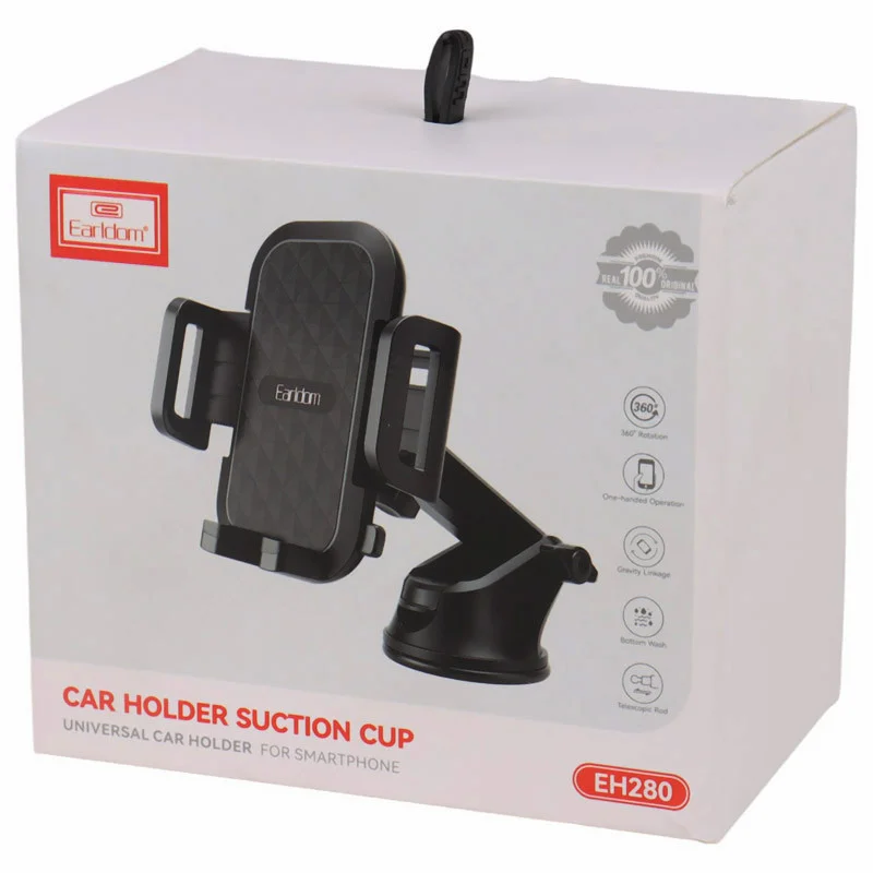 هولدر گوشی موبایل ارلدام مدل ET-EH280 ابعاد قابل تنظیم براکت ۷×۱۱.۵ سانتیمتر و ارتفاع پایه بین ۱۸ تا ۲۲ سانتیمتر چرخش ۳۶۰ درجه براکت بههمراه تنظیم ارتفاع و زاویه بازو با کلید چرخشی برای راحتی در استفاده بدنه ساختهشده از پلاستیک ABS و TPU با پوشش سیلیکونی در ناحیه گیرهها برای جلوگیری از خط و خش طراحی گیرهای با سه بازوی نگهدارنده شامل دو گیره کناری و یک گیره زیرین بههمراه عملکرد جاذبهای برای تثبیت گوشی پایه مکنده با قابلیت اتصال به داشبورد، شیشه و سطوح صاف با ثبات بالا با شیار عبور کابل شارژ برای استفاده همزمان از گوشی و شارژر