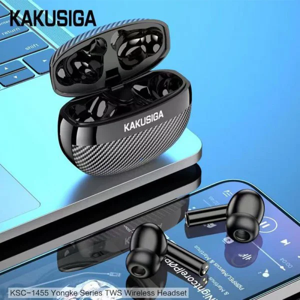 هندزفری بلوتوثی کاکوسیگا مدل KSC-1455 مجهز به بلوتوث نسخه ی 5.3 با اتصال سریع و پایدار و محدوده عملکرد ده متر طراحی ارگونومیک با کیفیت ساخت بالا، کیفیت صدای HD، تا 7 ساعت کارایی، اتصال TWS ظرفیت باتری کیس شارژ 300 میلی آمپرساعت، ظرفیت باتری گوشی ها 35 میلی آمپرساعت