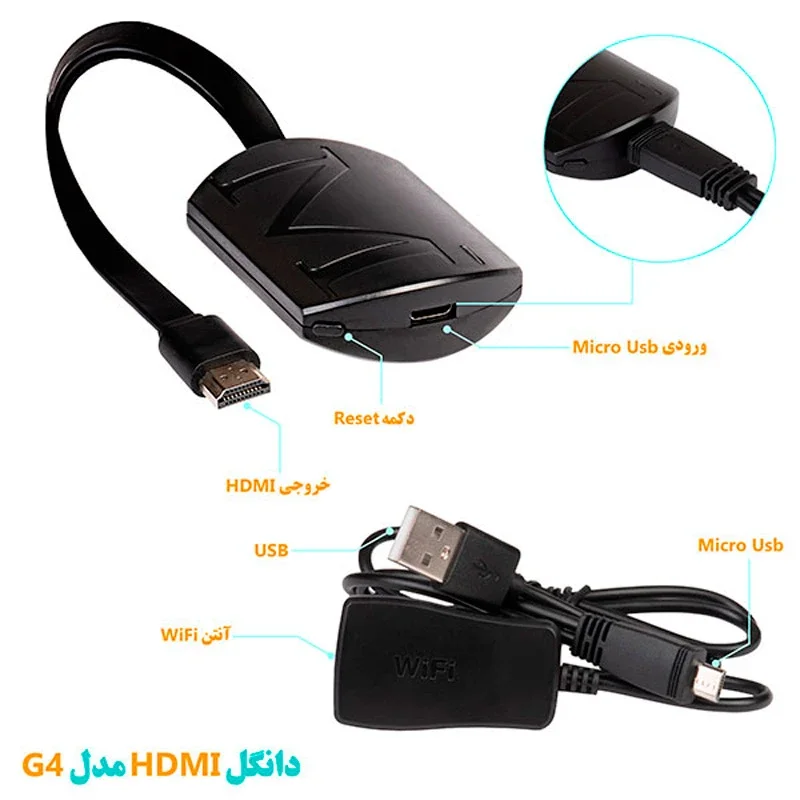 با پیشرفت تکنولوژی و استفاده از لوازم های الکترونیکی مختلف، نیاز به رابط هایی برای اتصال یک سری دستگاه ها در کنار هم بسیار ضرورت پیدا کرد که این وظیفه را دانگل ها می توانند به آسانی برای شما فراهم کنند. دانگل G4 ابعاد کوچک و جمع و جوری دارد که در داخل جیب یا کیف قرار می گیرد و با وزن حدود 26 گرم، جابجایی و حمل آن بسیار راحت انجام می شود. این دانگل جنس بدنه بسیار مقاومی دارد که در برابر ضربه و آسیب های احتمالی استحکام مناسبی از خود نشان می دهد. دانگل بی سیم با کانکتور HDMI ، برای انتقال فیلم ها و تصاویر با کیفیت وضوح 1080p بسیار مناسب می باشد. این رابط به کاربران اجازه می دهد تا به راحتی عکس، موسیقی، فیلم، بازی و سایر مطالب داخل گوشی های هوشمند، تبلت ها، کنسول های بازی و دیگر دستگاه های سازگار را در نمایشگر های بزرگ تری مانند HDTV یا پروژکتور به اشتراک بگذارند.
